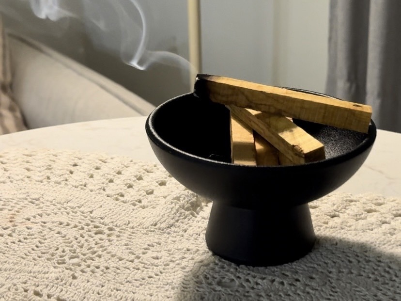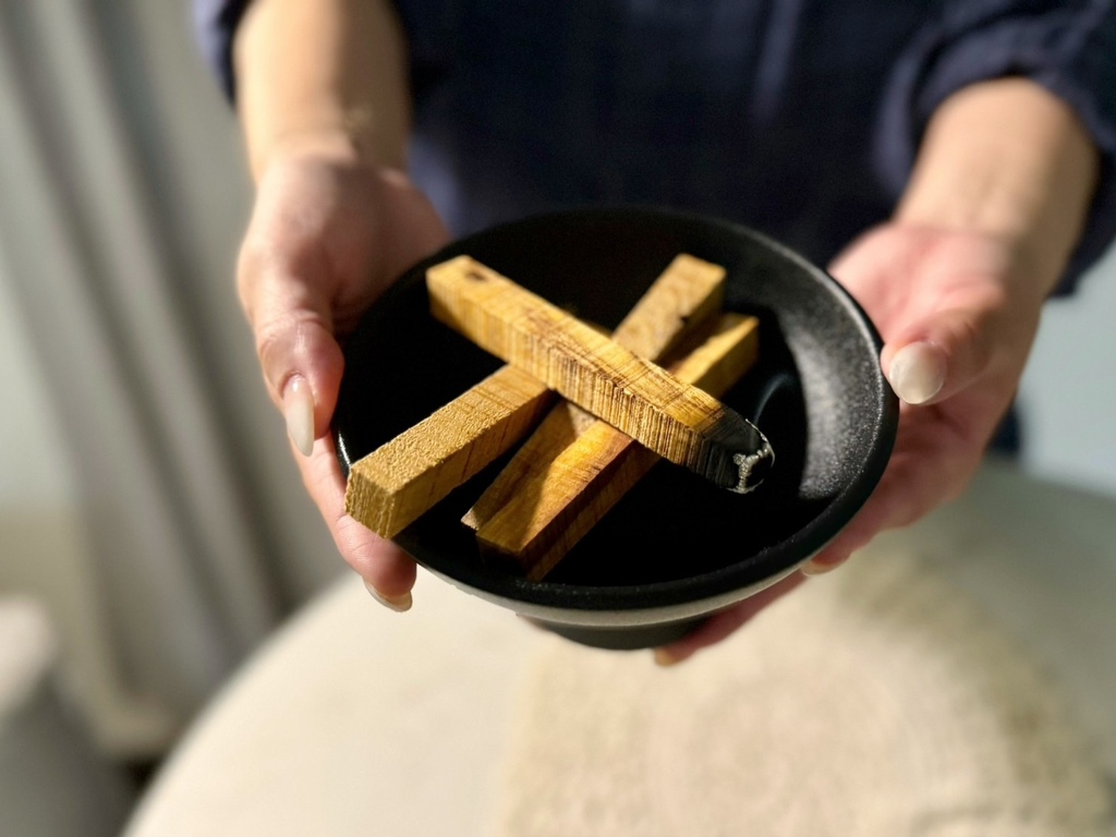 若想讓薰香味道更濃郁或進一步淨化整個空間,也可以拿著聖木沿著環境空間順時針薰香一圈。