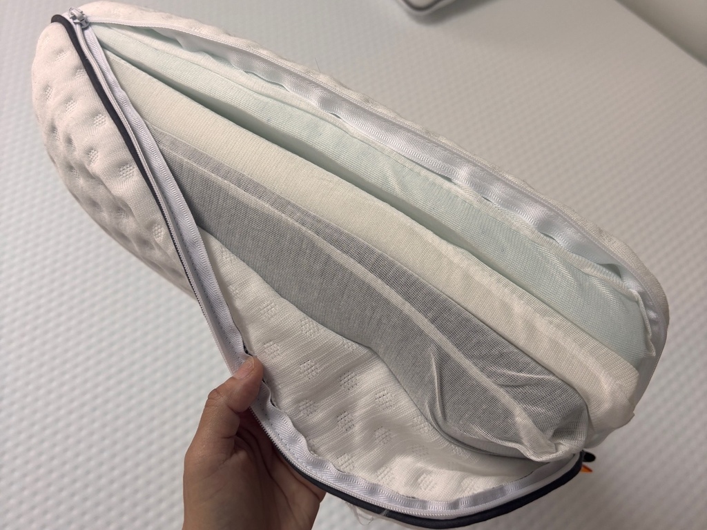 此外,枕頭的可拆洗高透氣布套讓我每次睡覺都能保持清爽,並且還能幫助調節溫濕度,尤其在潮濕天氣下,完全不需要額外準備枕頭套,在清洗方面也更簡便了。