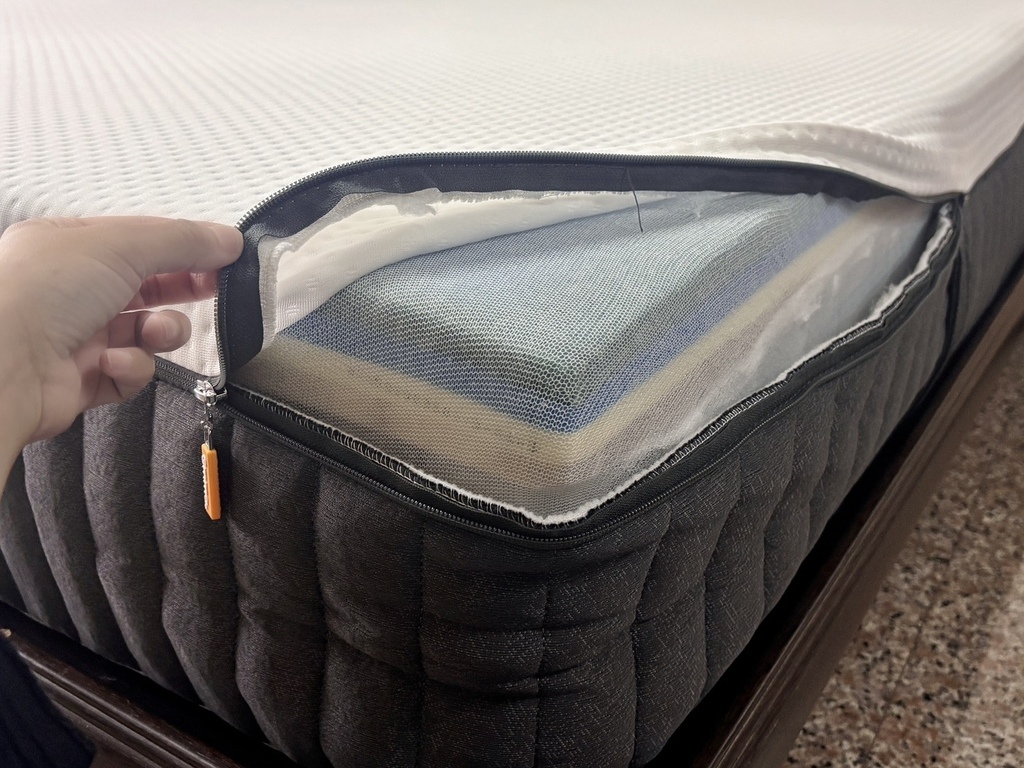 最上層的 Diamond Degree® 黑鑽石棉層,讓我即使在潮濕的環境下也不會感到悶熱,反而提供了一種清爽的舒適感,接下來是HRX 支撐性棉層,它能完美支撐我的頸部和頭部,無論翻身或換姿勢,始終能保持穩定的支撐感,不會有脖部不穩的問題,讓我整晚都能安穩入睡。而最底層的 Hypergel 棉層,觸感柔軟,提供了穩定的支撐,無論是側睡還是仰睡,都能讓我感到無比舒適。
